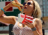 Ana Braga Eats a Hot Dog in a Sheer Top!