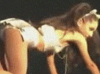 Great GIF of Ariana Grande on all four while performing one of her songs.