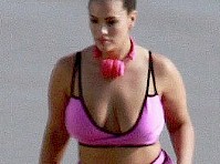 Pink bikini candids of Ashley Graham looking thick at the beach!