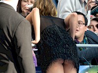 | Cara Delevingne bent over to reach her fans at the premiere of Pan in London and gave the other side of the red carpet a terrific view of her cheeks.