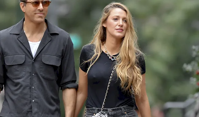 Candid pictures of Blake Lively showing nipple pokies in a black top while out and about with Ryan Reynolds in NYC! View the pictures