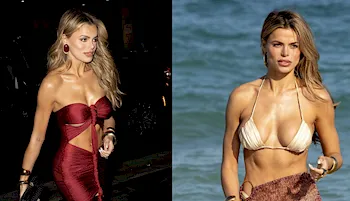 Brooks Nader sexy in a bikini along with her sister at the beach in Miami, and candid pictures of Brooks going out in a very sexy red dress!