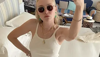Nice photo of a braless Dakota Fanning posing in a white tank top!