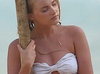 Candids of model Elsa Hosk in a white bikini at the beach!