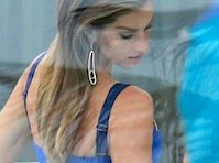 Behind the scenes candids of Gisele Bundchen looking asstastic in a blue swimsuit on the set of a photo shoot in Rio!