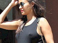 Candids of a super pregnant Zoe Saldana and her pokies in a black dress!