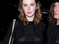 Great shots of a braless Ireland Baldwin getting out of a car in a sheer top!