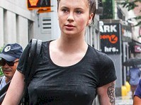 Great shot of Ireland Baldwin getting caught in the rain and wet t-shirt contest ensuing! No bra!