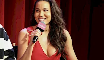 Jurnee Smollett showing nice cleavage in a red dress while she’s attending the SAG-AFTRA Foundation Conversations for The Order in Los Angeles!
