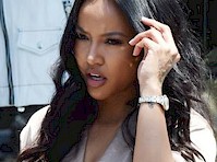 Behind the scenes photos of a leggy Karrueche Tran showing a bit of butt cheek while filming in LA!