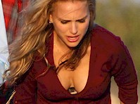 | Here’s Natalie Portman looking pretty as always with enhanced cleavage on the set of a new movie. I like her with bigger boobs.
