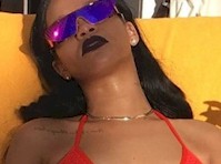 When a girl squirts your number all over her bikini body, it means she’s ripe and ready right? Rihanna sure looks ripe to me..