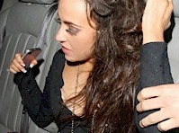 | Here’s British soap star Stephanie Davis flashing a bit of vagina while getting out of a car! She is wearing panties but they simply don’t provide enough coverage.