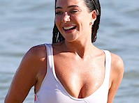 Candids of Tulisa Contostavlos looking good in a white bikini while getting wet at a beach in Portugal!
