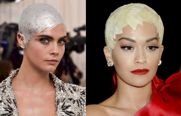 Cara Delevingne and Rita Ora both sported interesting hair styles at the MET Gala last night. It’s like one of them got dipped in silver and the other in gold. What a mess!