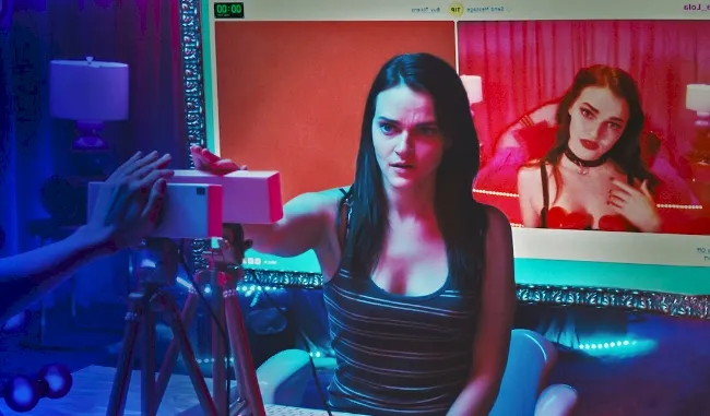 Netflix movie Cam from 2018 is all about the world of camgirls where Alice (played by Madeline Brewer) is a young woman who works as a cam girl and broadcasts sexy shows from a studio that she has set up in her home. She has become obsessed with her rank on the site, hoping to be number 1 which is a spot currently held by another girl.