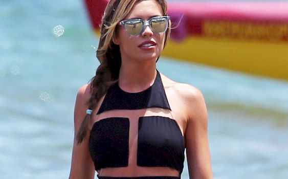 Candids of Abigail Clancy wearing a sexy swimsuit at the beach in Miami! I like that split swimsuit look and lovin’ the pokies!