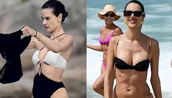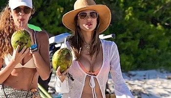 Alessandra Ambrosio sexy and showing nipple pokies in a white swimsuit at the beach in Rio De Janeiro, Brazil! View the pictures