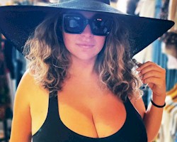 Fantastic photo of celebrity radio host Alex Gervasi showing cleavage in a black top! Her boobs belong on TV, not radio.