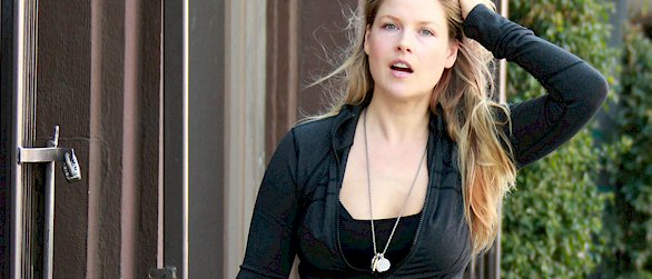 Here’s Ali Larter heading to the gym to try and work off that baby weight! The baby must have worked over those nips because they are poking through not only one but TWO tops! A hint of camel toe in those tight pants as well.