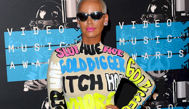 Kanye’s ex Amber Rose wore a bodysuit with words such as “bitch”, “slut”, “gold digger”, “stripper” etc on it to the 2015 Mtv VMAs… so.. I guess its just quotes from what people are calling her on her Twitter feed?
