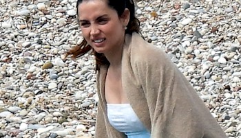 Behind the scenes candids of Ana De Armas wearing a blue swimsuit while filming a commercial for Natural Diamond Council in Palma De Mallorca! Can see pokies in a few of the photos. View the pictures