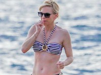 Candids of Anna Faris wearing a striped bikini at the beach in Hawaii!