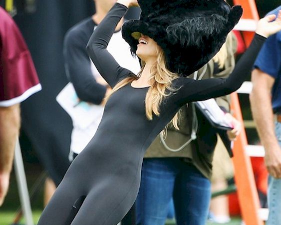 AnnaLynne McCord shooting some scenes for 90210 wearing a spandex bodysuit which doesn’t exactly hide her curves! It would be interesting to find out just exactly what this scene is all about. Apparently AnnaLynne McCord’s character has to wear a spandex bodysuit with a big mascot head.. makes you wonder why besides the fact that the director just needed an excuse to put her in that suit.