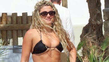 Candids of reality star Antigoni Buxton wearing a tiny black bikini at the beach in Mykonos!