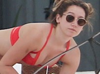 Lovely candids of Ashley Tisdale wearing a red bikini by the pool in Cabo! One or two terrific ass shots.