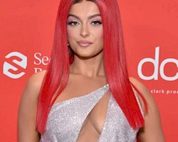 Bebe Rexha wore a sexy silver dress and showed off her cleavage on the red carpet at the 2020 American Music Awards!
