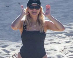 Candids of Bebe Rexha having mighty thighs while wearing a swimsuit at the beach in Mexico!