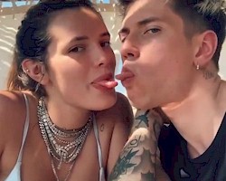 Bella Thorne has, as always, been busy on social media including tonguing her boyfriend, eating pasta in a bikini top and getting high in a knitted top.