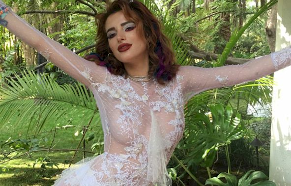 Bella Thorne shared these pics of herself in a very sheer dress to Instagram! Her nipples! I can see her nipples!