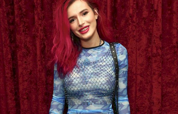 Here’s a braless Bella Thorne at the SiriusXM studios! Can’t really see her nipple but the piercing is very visible!