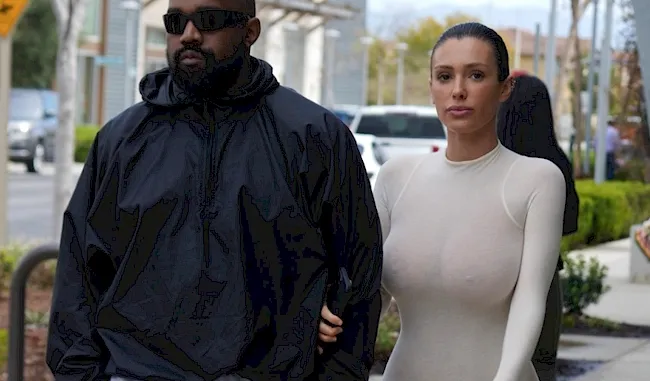 Candid pictures of Bianca Censori wearing a see through body suit while walking around Oxnard mall in Los Angeles with Kanye!