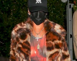 Candids of Rihanna out to dinner in a see through dress and no bra! Unfortunately all we get is cleavage but she still sexy.