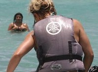 Candids of Britney Spears flashing a bit of butt while fixing her bikini bottom on top of a jet-ski in Miami!