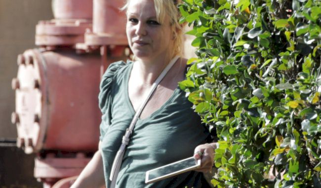 Candids of a braless Britney Spears showing nipple pokies in a green top after a Yoga class in Hawaii! View the pictures