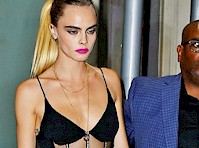 Candids of Cara Delevingne going out in a very sexy black dress!