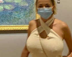 Here’s curvy model and singer Caroline Vreeland showing nipple pokies while visiting a museum or art gallery!