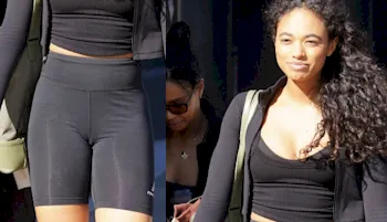 Candid pictures of actress Chandler Kinney showing camel toe in tight shorts outside the Dancing With The Stars rehearsals in LA!
