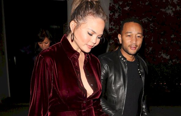 Candids of a braless Chrissy Teigen leaving a restaurant in Beverly Hills! Even though this is just after a dinner I would happily nibble on those pokies as a dessert.