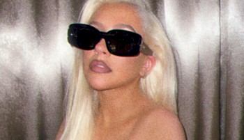 Outtakes of a topless Christina Aguilera covering her boobs with a leather glove!