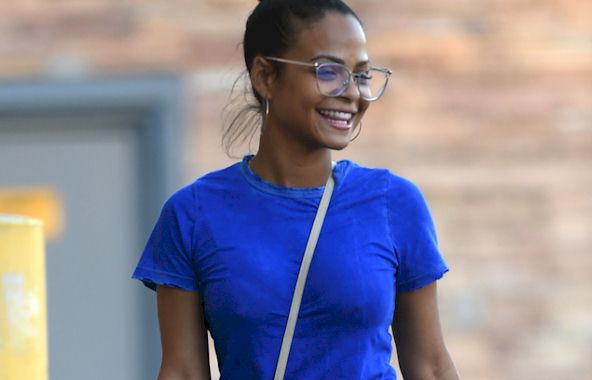 Candids of a very blue Christina Milian being in a good mood and showing pokies while out and about in LA! View the pictures