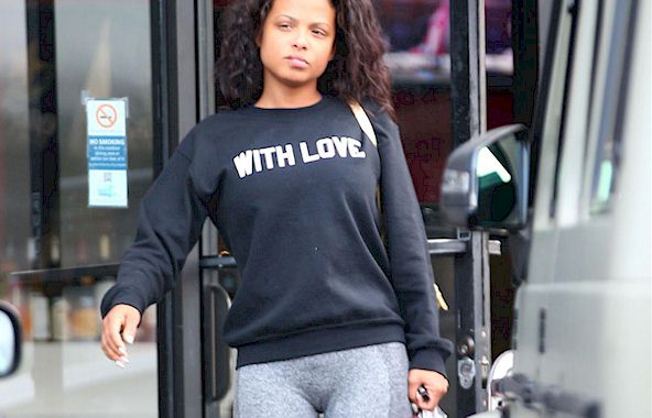 Candids of Christina Milian with a juicy leggings camel toe on display while grabbing lunch with a friend in Studio City! View the pictures