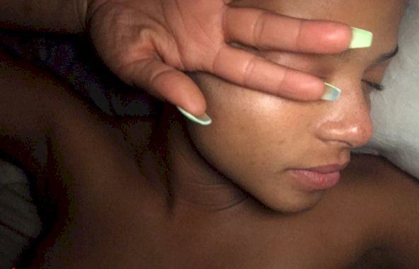 Caps of a topless Christina Milian hanging out in bed on SnapChat! She put a lip emoji over her nipple in the photo but in those blurry caps the emoji is missing. Hard to tell if there is a nipple visible or not though. There should be one but its so blurry! View the pictures + GIF