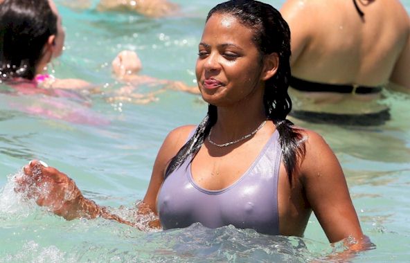Remember a few weeks ago when we got amazing Christina Milian bikini candids every day? Well, we got so many that I missed these ones and the terrific nip slip we get from Christina walking out of the water! View the pictures