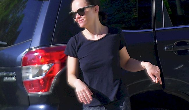Candids of Christina Ricci being casual in sweats and t-shirt while stepping out of a car in LA! View the pictures