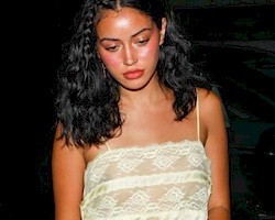 Candids of model Cindy Kimberly arriving to a birthday party in a see through dress!